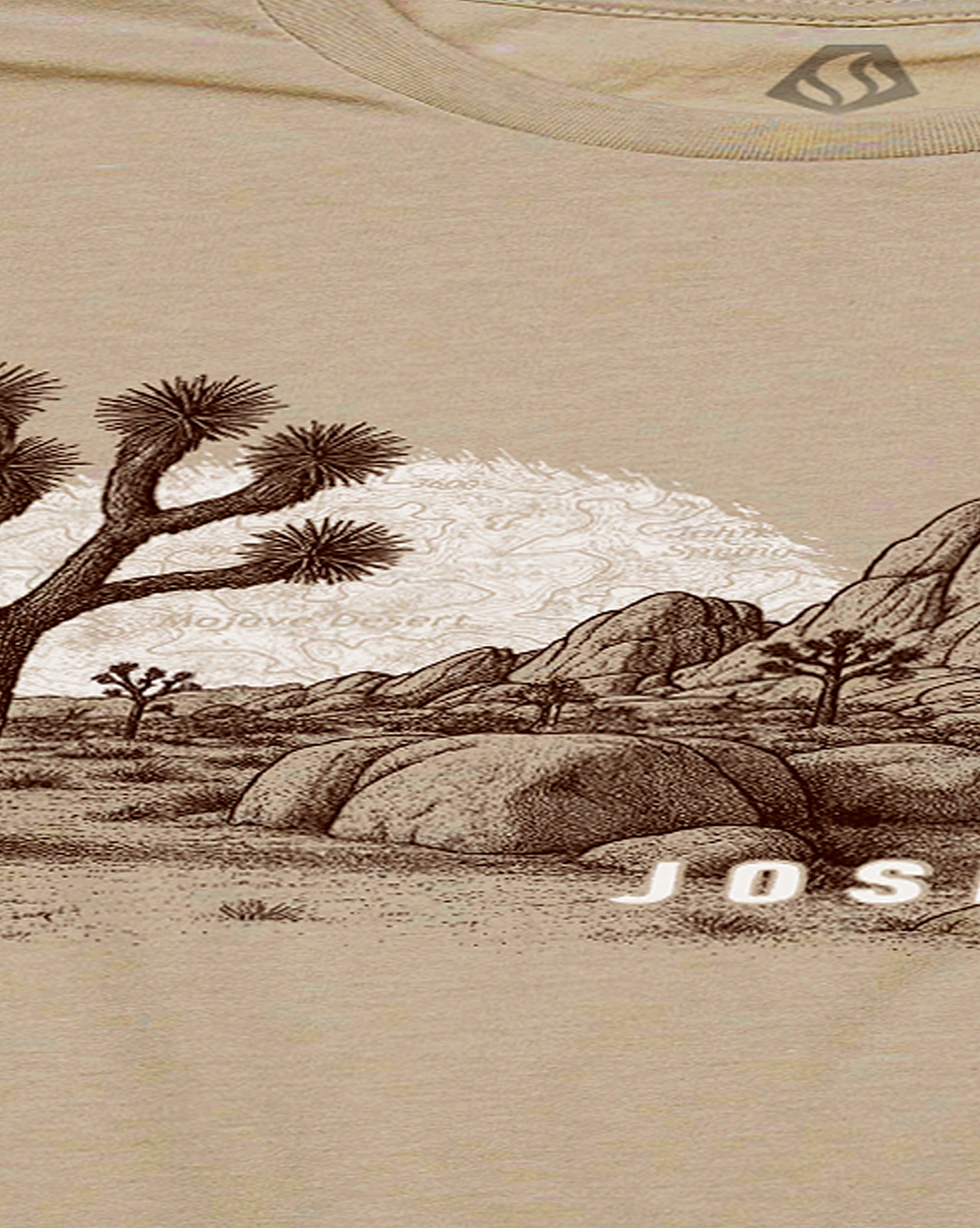 Inspired by the surreal desert landscapes and iconic rock formations of Joshua Tree National Park, this tee is made for those who feel at home under vast desert skies. Screen printed with a super dark, muted clay red ink paired with a soft light grey, the design captures the raw texture and timeless beauty of the Mojave. The art pops on a deep tan heather fabric that gives the whole shirt a vintage desert vibe.