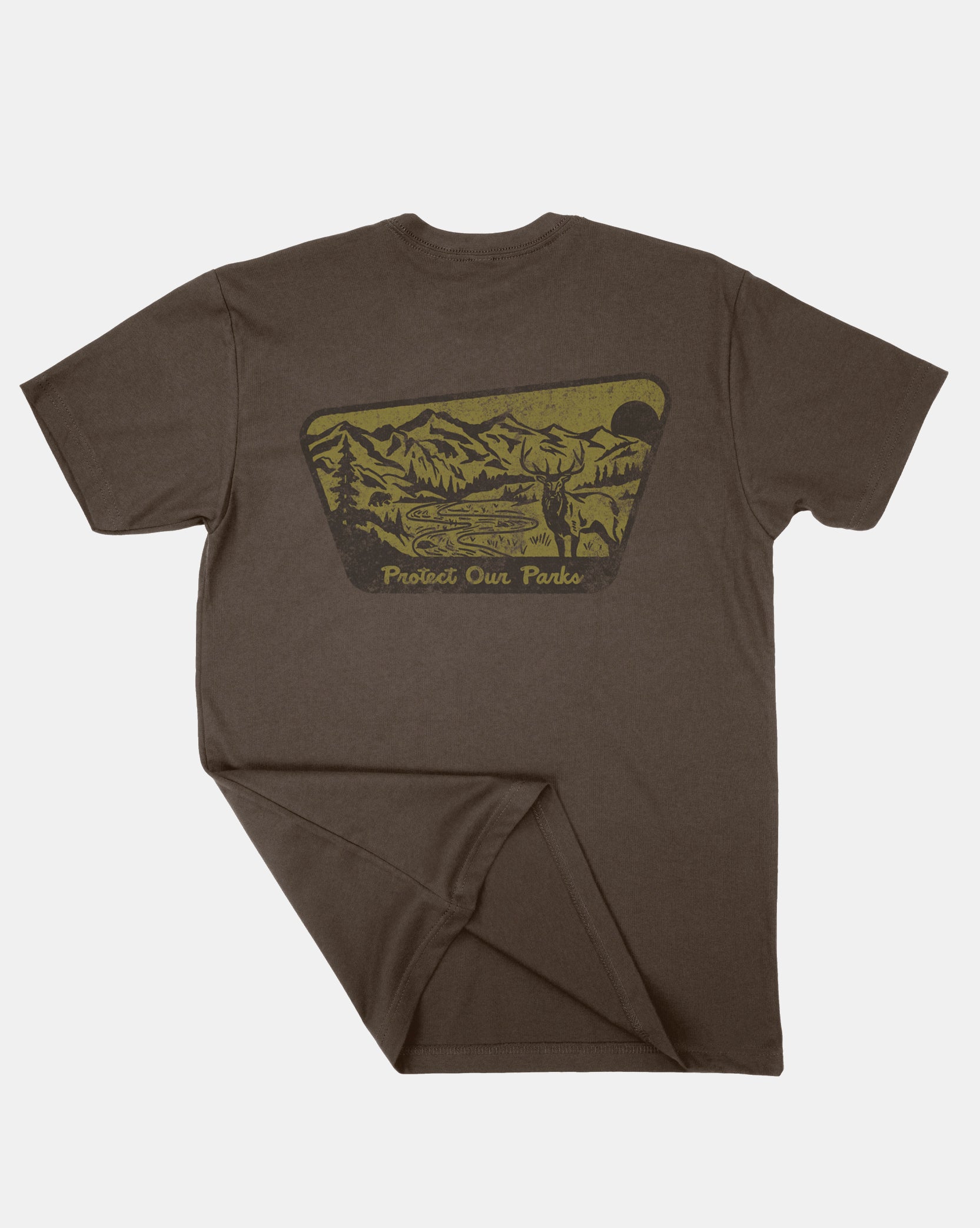 Celebrate the beauty of Colorado’s mountains and our national parks with this limited-edition Protect Our Parks t-shirt, designed by Boulder-based artist Joe Cooper. Featuring a retro, timeless illustration printed in a tone-on-tone color scheme on a premium 60-40 brown blended fabric, this tee embodies a commitment to conservation and the outdoors.